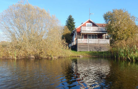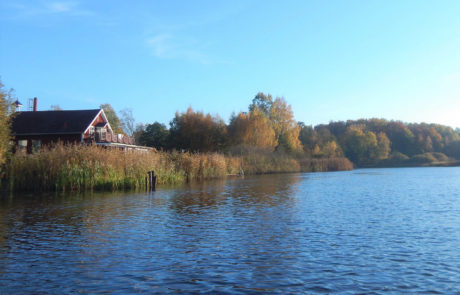 På nedre plan har ni ett stort och ljust allrum med en bekväm soffa och det finns en sovalkov med 1 våningssäng. Här nere finns dessutom ett lagom stort, bekvämt och välutrustat kök med en ”typisk svensk” matplats. Det finns dessutom ett fräscht badrum med wc och dusch. Från vardagsrummet leder dörrar ut till den stora möblerade altanen där ni sitter på ”metspö-avstånd” från Mörrumsån! Fisket är i toppklass längs en 2 km lång privat sträcka av Mörrumsåns övre del. Fisket här bedrivs som “catch and release”, det innebär att fisken ska hanteras varsamt och släppas tillbaka. I fiskekortet är forellfiske inkluderat.